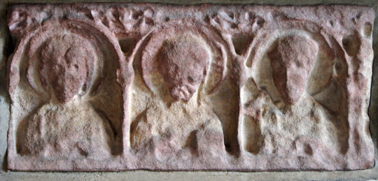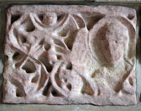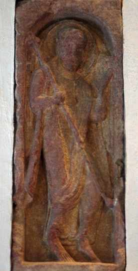 The excitement doesn’t end there. In the south chancel wall are two more carvings. One is St Michael and the other is still unidentified. Prof Rosemary Cramp of Durham University (the acknowledged expert on Anglo-Saxon churches) claims these of being of that period not of the Norman period as originally thought. She believes they were used in individual altars within an Anglo-Saxon church on this site. This ties in with the theory that the vestry had accommodation for pilgrims and is supported by the presence of the Anglo-Saxon frieze carvings.