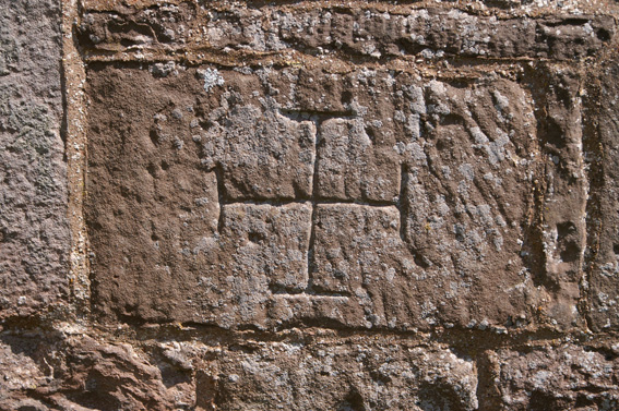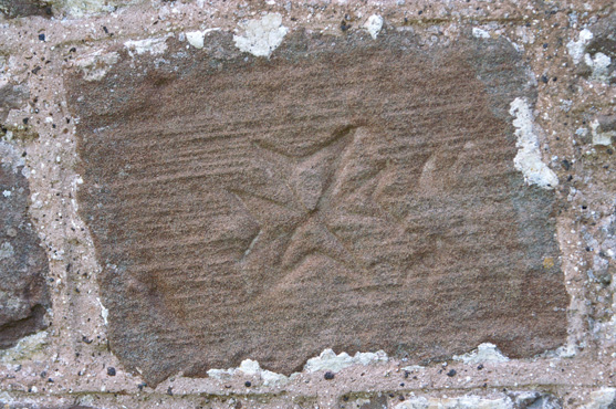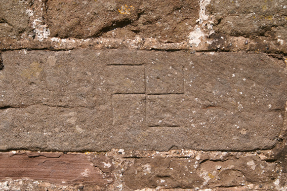 Left: “Cross Crosslet”. Possibly used to represent the four gospels. Second Left: A “Cross Potent” (that is, with “T” shapes at each arm). Mainly a Roman Catholic symbol. Of course, prior to the Reformation catholicism was the only accepted form of Christianity in England. “Potent” in this context means “crutch”. Second Right: This is possibly a “patriarchal cross” much used in Orthodox Christianity where the shorter crossbar signifies the church patriarchs**.** Again, Templars and Hospitallers may well have been familiar with this symbolism from their service in the Crusades, but the issue is confused by the addition of crosslets on both arms. Is this simply a freelance version meant to incorporate patriarchal and crosslet inconography? Another Garway engima! Far Right: “Maltese” cross on the east wall of the chapel. We only know this as a Maltese cross because the Hospitallers themselves were exiled to and ruled Malta after the fall of the Holy Land. This form of cross is known in other heraldic contexts but we can safely assume that at Garway it is indeed a Hospitaller emblem.