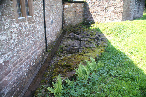 pseudo-battlements and there are plenty of places where the towers clearly had secondary military functionality, but the tower at Garway was originally separate from the rest of the church and designed for defensive purposes. Indeed, this is unmistakable from its massive dimensions, paucity of window openings especially in the lower stage and the palpable strength of the masonry. Sadly, this tower is no longer open to the casual visitor, although the interior is simple and conceals no exciting architectural features. Henry II granted this site to the Templars. There is nothing unusual in such an endowment, but we might speculate that it suited Henry very well to have an elite military order established so close to the lawless Welsh borders! The local area - known as Archenfield - was a relatively peaceful “buffer state” between the two countries, located in England but with the people Welsh-speaking. The site for the Templar preceptory was probably due to the springs rising from Garway Hilll and providing both drinking water and supplies for the fishponds.