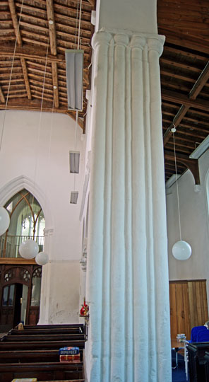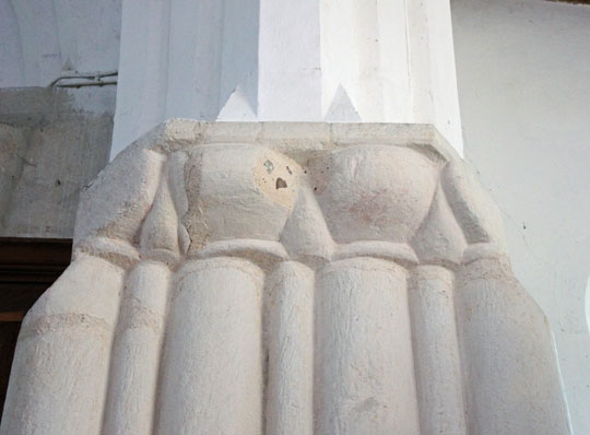Close-ups of the south chancel arch capitals (left) and northern ones (right) suggest that they were originally identical but that the southern ones were hacked about to facilitate the replacement of the arch.