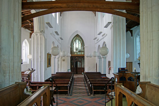 Two things strike you when you enter Holy Trinity (apart from the architecture, of course!) are the very white walls and the very obtrusive globular light fittings. I am no fan of whitewashed churches but in the case of Great Paxton I suspect the whiteness enhances what might otherwise be a rather dark interior. The lights are peculiar and I can’t recall seeing anything like them elsewhere. They look like remnants from a 1930s hospital ward!