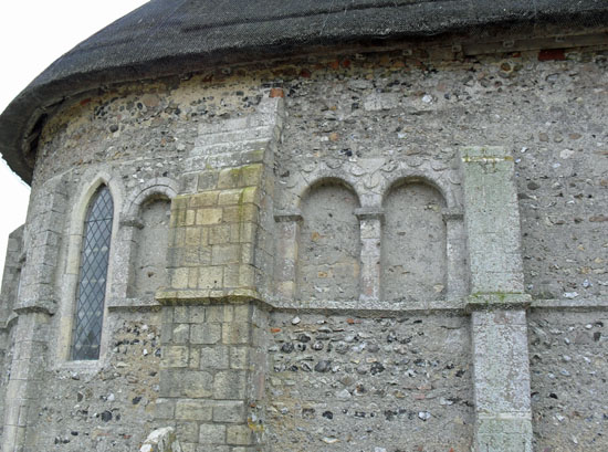 Now managed by the Churches Conservation Trust, Hales has a near-intact Norman nave and apsidal chancel that date to around 1140. Surviving apses are rather rare because their shape discouraged expansion eastwards and because they were incapable of supporting one of the large east windows that became very fashionable in the Gothic era. Unable to afford such a rebuild it seems that the parish had to settle for flattening the east end slightly to house a simple Early English style window. EE lancets were also added at this end of the church marring somewhat the Norman arcading. The church retains its thatched roof. Many churches would have such roofs in this area at the time as the material was readily available whereas suitable stone decidedly was not. Interestingly, though, the CCT believes the apse may originally have been vaulted.