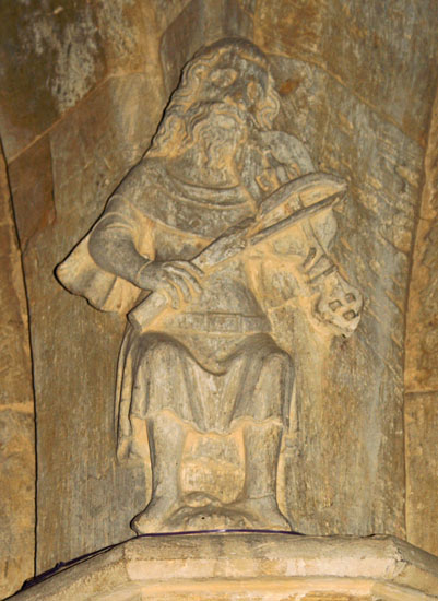 The musicians on the south aisle arcade. The fiddle player (far right) is particularly fine and note the amount of detail in the clothes, beard and the instrument itself. You can even see the pegs for tightening the strings!