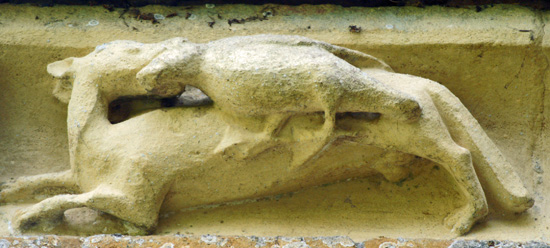 Architecturally, Hanwell is insignificant. It’s carvings which are believed to date from about 1340 are not. The frieze, although similar in style to Bloxham and Adderbury, has a character all of its own. We don’t have the “village orchestra” here as we do in Adderbury. Nor does we have the grotesque monsters and scenes from village life we see in both Bloxham and Adderbury. It does have amusing man/animal hybrids such as are seen on Adderbury’s south aisle. This is significant because the claimed 1340 date for Hanwell’s frieze is close to the end of Adderbury’s own rebuilding in 1344. Bloxham claims a similar date. So perhaps there was indeed there was one or more carvers in common between the two churches. What is also interesting is that the Black Death hit England and halved its population in 1348. Did this man or these men survive?