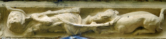 This is the frieze of the north side of the chancel. It gives the impression of one long continuous canvas - in common with Bloxham and Adderbury - and could be compared with the East Midlands School where the carvings are discrete blocks rather than continuous, See, for example, Ryhall, Rutland.