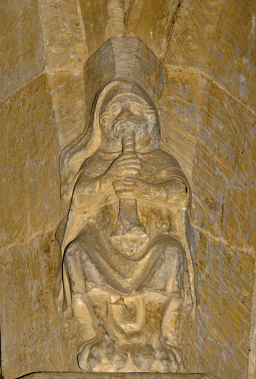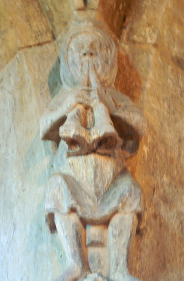 The musicians on the south aisle arcade. The fiddle player (far right) is particularly fine and note the amount of detail in the clothes, beard and the instrument itself. You can even see the pegs for tightening the strings!