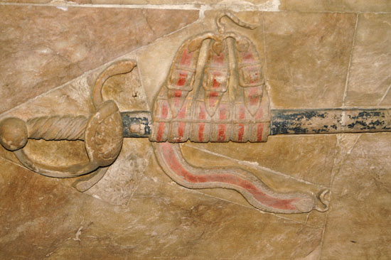 William Cope obviously saw himself as something of a martial figure. This is detail of the sword hilt on his monument.
