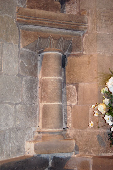Left: One of the beautifully-executed half pillars supporting the cross vault at the east end of the sanctuary. Centre: The only remaining Norman window in the north side of the sanctuary. Right: The Anglo-Saxon doorway in the south side of the choir. Don’t be deceived by the modern lintel - look at the arched top above it.