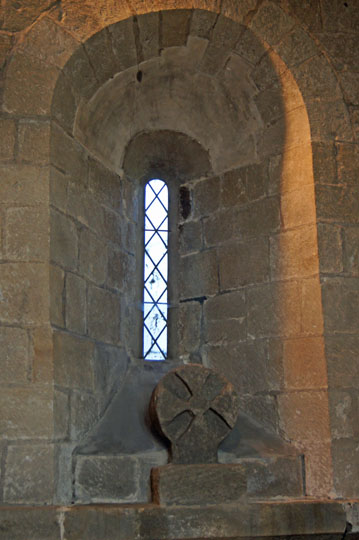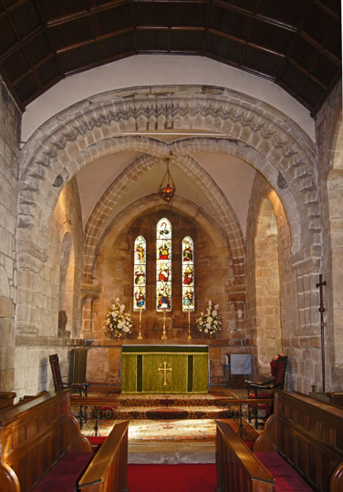 The rest of the apse became part of the existing choir, thus the church became a three-celled one, although both choir and sanctuary are very short. A Norman window survives on the north wall of the sanctuary.