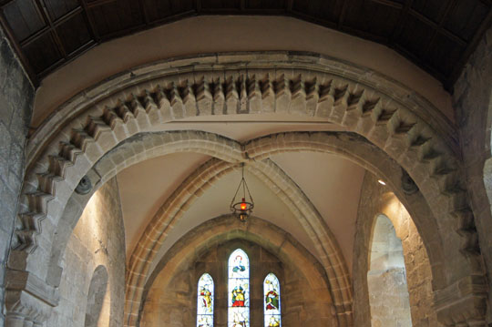 In a church where you would be hard-pressed to identify many of the modifications that have occurred over the centuries such has been the care taken, the awful bodging of what would originally have been the semi-circular sanctuary arch is a surprise and disappointment. The Norman vault, however, has a lovely simplicity and cleanness of form.