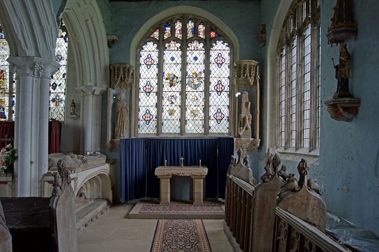 The rood screen survives, albeit restored and repaired. The Lady Chapel has an ancient altar slab hidden during the Reformation. It still has its five