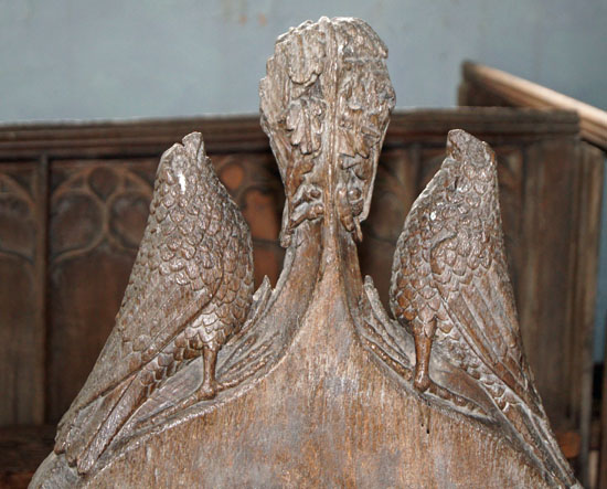 Left: The Church Guide suggests these are eagles. If they are then they are very badly drawn! Centre: A pair of angels. Right: Two lions - or perhaps fantastic creatures.