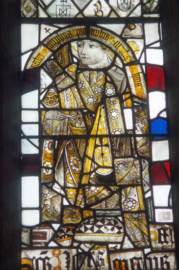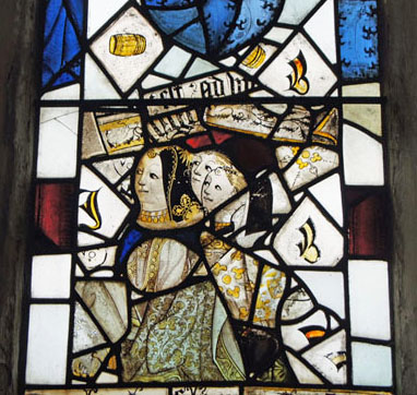 Both the east windows contain mediaeval glass. As in many churches, some of it is fragmentary and has been re-assembled rather haphazardly. The chancel window, however, has three readily-distinguishable figures of saints and also (perhaps inevitably) coats of arms associated with the Barton family! Some of the glass, including four quatrefoils, were donated from the ruined church at Annesley. The Lady Chapel window also had prophets in its top lights and parts of these remain.
