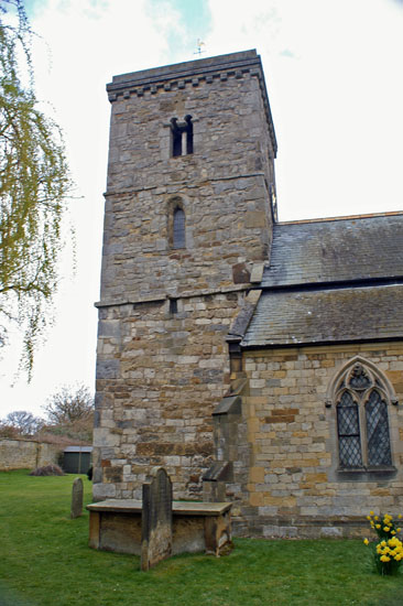 There is little externally to betray Hovingham’s comparatively recent rebuilding. It looks like a fairly typical “muddled” church with parts from most of the Gothic period. The Saxon provenance of the tower is, however, immediately apparent.
