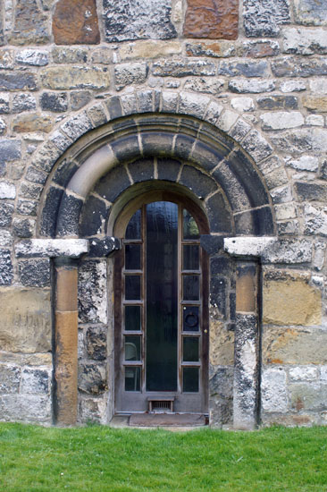 The Saxon west doorway. This would have been the only entrance to the Saxon church. Note the lack of a keystone, which is typical of saxon architecture.
