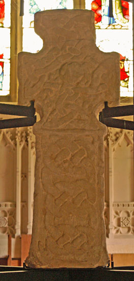 The Wheel Cross is a true treasure. It is c10 and we can see that it has what we would now regard as a more “normal” cross shape with longer transverse arms, unlike the Anglian Cross (see above) that has arms of equal length. The “wheel” design behind the arms shows Scandinavian influence. Celtic-style designs are still discernible - just - on the surface of the cross itself.