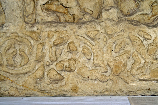 Detail from the bottom (left) and top of the frieze.