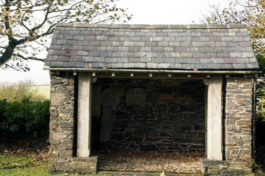 Within the grounds of the church is a small shelter, open on one side, within which are housed Lonan’s collection of crosses and carved slabs.