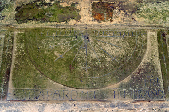 The sundial is above the south door, hidden within the porch. On stone panels either side of the sundial it bears the inscription: “Orm, the son of Gamal, bought St Gregory’s church when it was broken and fallen, and had it made anew from the ground in honour of Christ and St Gregory, in the days of Edward the King and Tosti the Earl”. The inscriptions are in Old English rather than in Old Norse even though Kirkdale is within one of the areas of England where the proportion of Scandinavian settlers was highest of all.