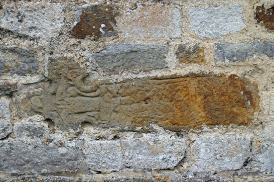 Above: Two very obvious Anglo-Saxon or Viking crosses incorporated into the walls.