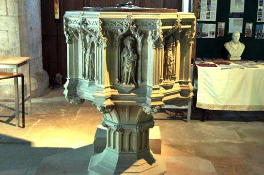 Left: Looking towards the east end. Right: No, this is not the Norman font! It’s the Victorian one that’s in use today. It is, I suppose, not better nor worse than hundreds of others but it is so well-mannered and “safe” compared with the Norman one! If fonts were produced in factories and sold via catalogue I suspect this would be a best-seller!