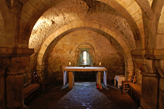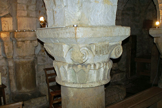 From this view the squatness of the columns is very obvious. Note also the small windows to left and right at the end of the crypt’s “aisles”.