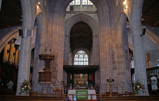 Looking towards the crossing, with the choir beyond, The soaring perpendicular arches of crossing and aisles can clearly be seen.