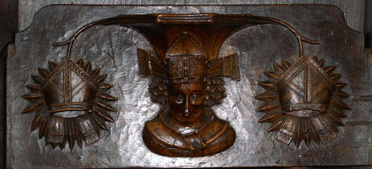 A bishop believed to be Bishop Mascal of Hereford 1401-16, a native of Ludlow. Twigged,