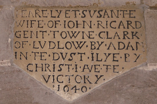 A 1640 monument to Susan, wife of “John Ricard, gent”.