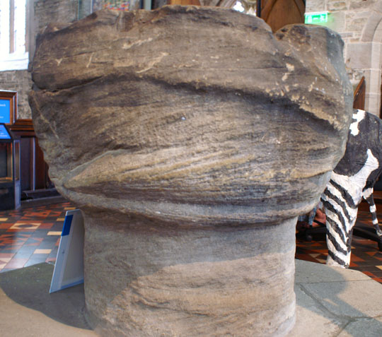 The font from the original c12 church. If you have read other pages on this site you will hardly be astounded that this was used as a water butt in the churchyard for several centuries…