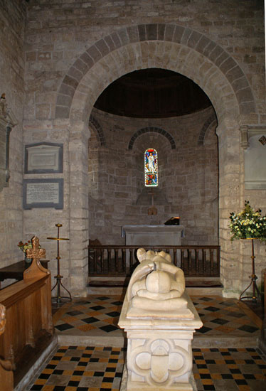 The apse arch is little different from the chancel arch, but this does give a pleasant symmetry to the church. Sir Hugh rests peacefully in the chancel.