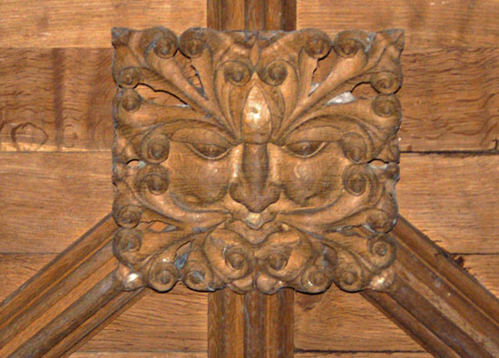 The roof dates only from 1978, but it is nice to see the Green Man still featuring in the English church!