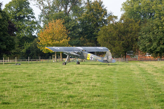 It’s not every day that you see a part of the Luftwaffe parked next to a parish church! I immediately identified this as a Fiesler Storch of WWII vintage, a spotter plan that was similar to the RAF’s Westland Lysander.