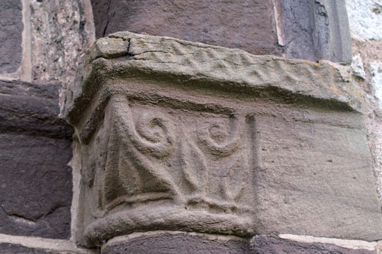 Above: One of the north door capitals, with a design similar to the south door, but also showing a decorated course similar to that on the chancel arch.