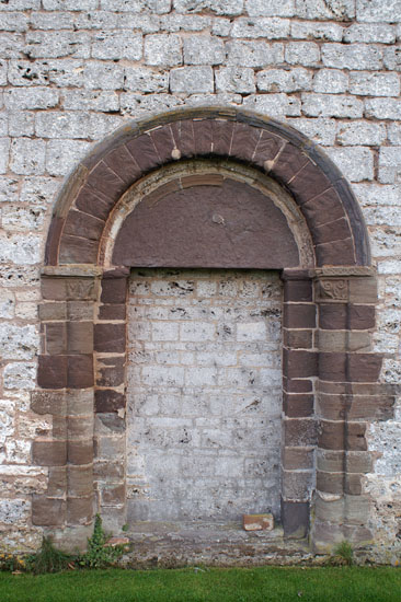 The south door has a tympanum but its design of human figures and beasts around a Tree of Life has been all but obliterated by weathering. The north door’s tympanum had a scrolled ornament and a beast but I defy anyone to distinguish it now. On both doors the carvings on the capitals are faint but still visible. There are chevron mouldings over the doors.