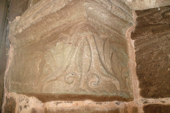Above: One of the north door capitals, with a design similar to the south door, but also showing a decorated course similar to that on the chancel arch.