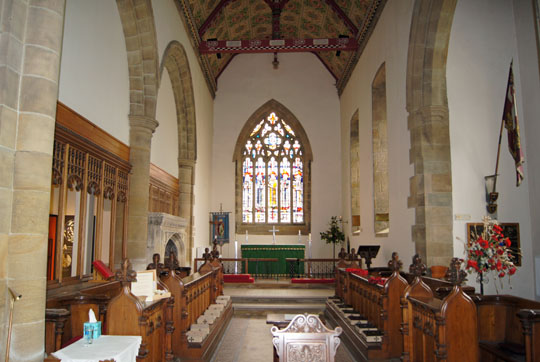Left: It is believed that this would have been a rood (cross) that has at some time been chiselled out and filled in with stone. Right: The Victorian chancel.