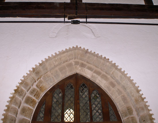 The nave walls are the original Norman but you wouldn’t really know it. The tower is c13, despite having a round-headed west door and south window. A filled-in Norman window over the tower arch does not relate to the tower.