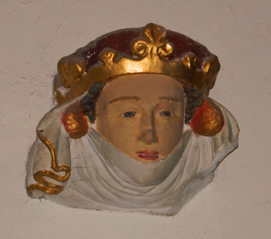 The internal carvings are, however, are of considerable historical interest. There is a lovely head of King Edward II (done to death in Berkely Castle) facing his wife Isabella. Above his head is a smaller stone carving of Piers Gaveston who was his friend and, according to some historians, his catamite. The favour shown to Gaveston was one of the roots of Edward’s overthrow and murder.