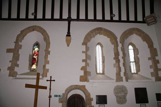 The nave walls are the original Norman but you wouldn’t really know it. The tower is c13, despite having a round-headed west door and south window. A filled-in Norman window over the tower arch does not relate to the tower.