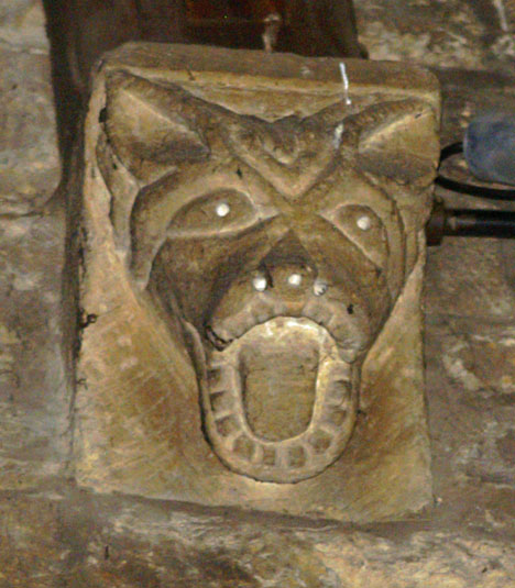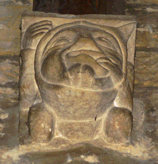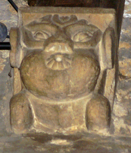 From this picture you can see that there are faint but nevertheless discernible decorations on the zig zags above the door. It is rather a strange mix with one or two of the designs looking as if they might resemble Romanesque beakheads. More intriguing is the pentagram design at the centre of the arch. This is not a six-sided “double trinity” star but clearly a pentagram. Few icons are more ambiguous, having significance in wicca, tarot and all manner of new-age flummery. We have some choices as to what this example might mean: possibly to signify the 5 wounds of Christ; as a symbol of the Star of Bethlehem; or, perhaps more prosaically, as an amulet - a good luck symbol.