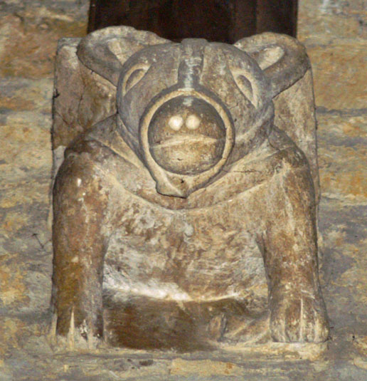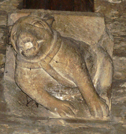 These dog corbels are on the north side of the choir, facing men on the north side.
