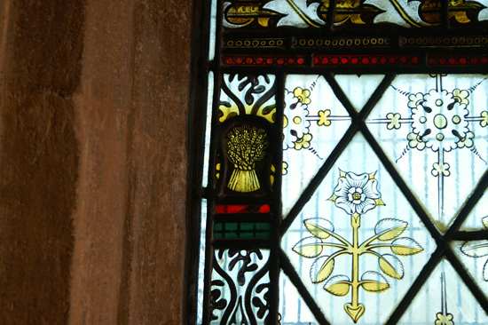 Left: Except for during his earliest days, Kempe always incorporated a trademark wheatsheaf into his windows. This is Ryhall’s. Right: And finally, another grotesque, this time from the interior.