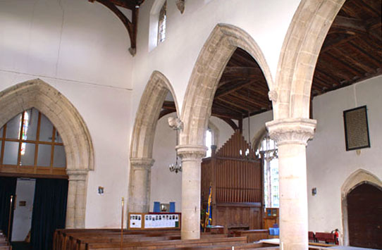 The north arcade (right) is slightly older than the south. Architecturally there is little to differentiate them and this makes for a pleasing symmetry. Note, however, the octagonal capital on one of the northern bays and the slight variations between the water leaf designs on the capitals.