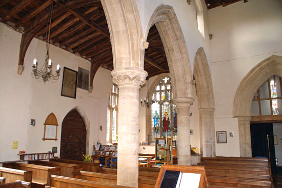 The north arcade (right) is slightly older than the south. Architecturally there is little to differentiate them and this makes for a pleasing symmetry. Note, however, the octagonal capital on one of the northern bays and the slight variations between the water leaf designs on the capitals.