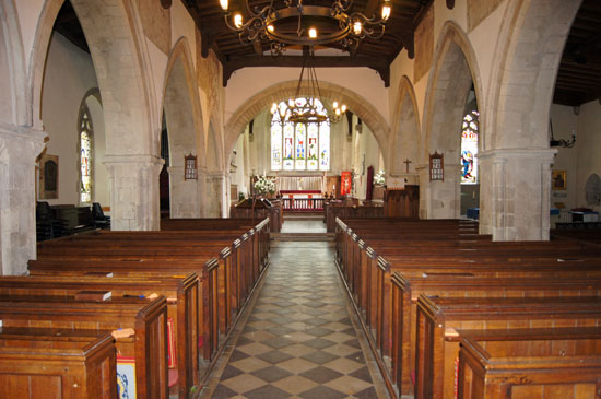 The view to the west. The font is in the centre rear of this picture. Note the square arcade pillars.