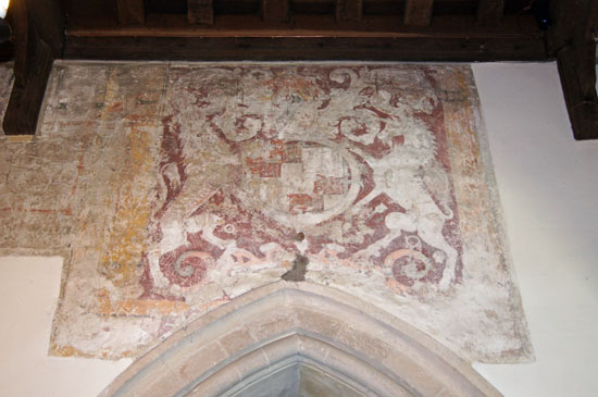The Arms of Charles II painted on the nave wall.