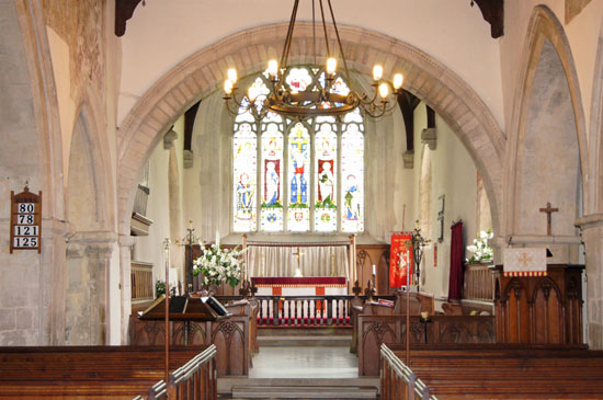 Looking towards the chancel with its plain Norman arch.