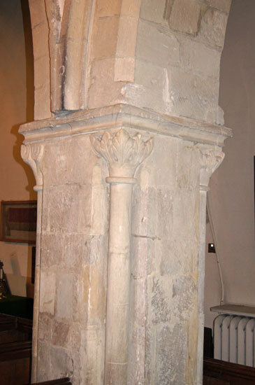The Church Guide remarks on the fact that the arches do not face each other across the nave, thus making the arcades curiously asymmetrical. For my part I also found the design of the pillars a little unusual too: square in plan and with a decorative shaft at each corner. Such pillars are more usually circular in plan.