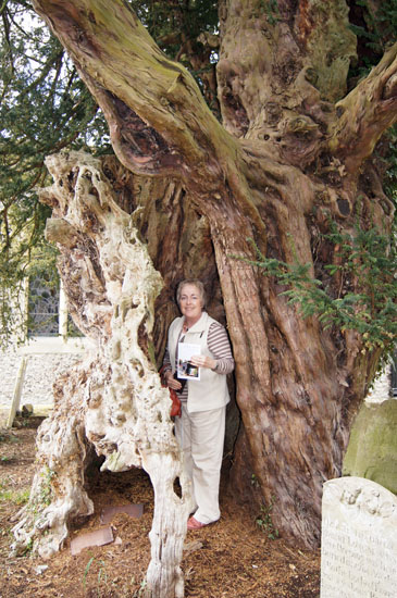 Diana is standing inside a yew tree that is thought to be 800 years old - as old as the church itself.